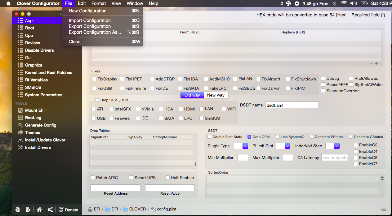 Step 2.Tap on Load Configuration and Import you Config.Plist which basically placed on EFI/Clover/Config.Plist