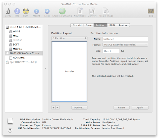 is set to “Mac OS X Extended(Journeled)”; name it “Installer”