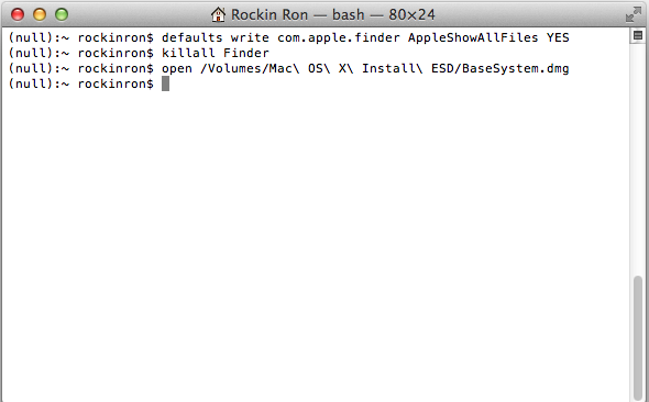 9:-Mount BaseSystem.dmg by typing the following in terminal: