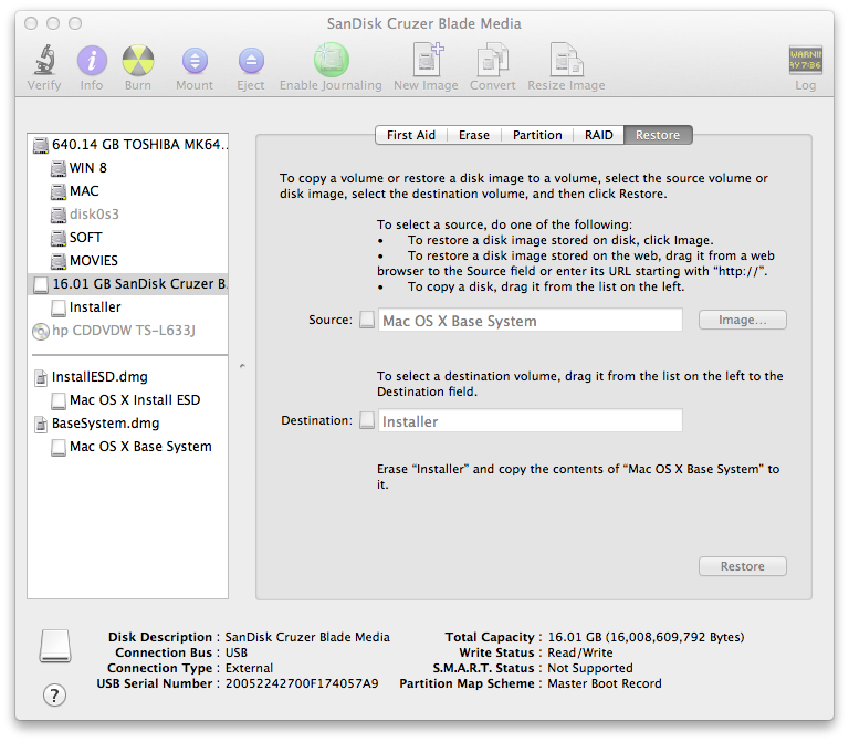 then drag and drop your Installer to“destination” & Mac OS X Base System