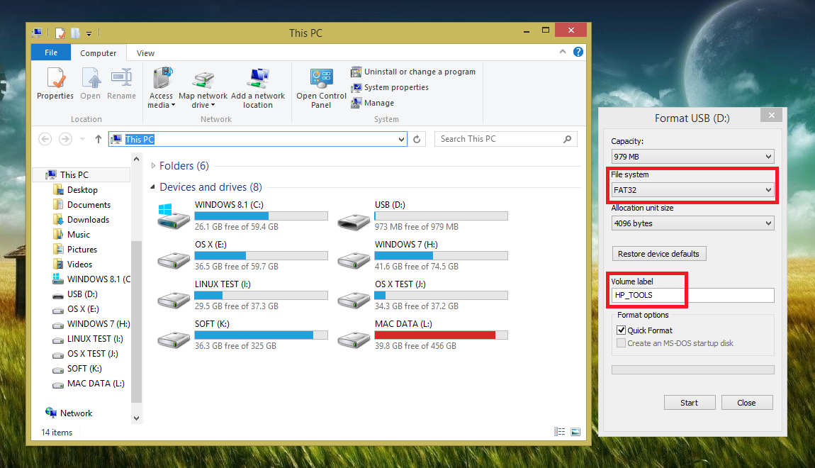1:-Format your USB Flash drive with Fat32 format from windows and name it “HP_TOOLS” make sure do not mistake