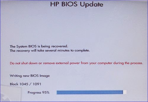4:-Still pressing the Windows key and the B key, press and hold down the Power button on the notebook until you get HP BIOS Update screen displays