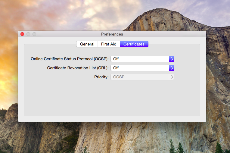 – Set “Online Certificate Status Protocol (OCSP)” to”Off”